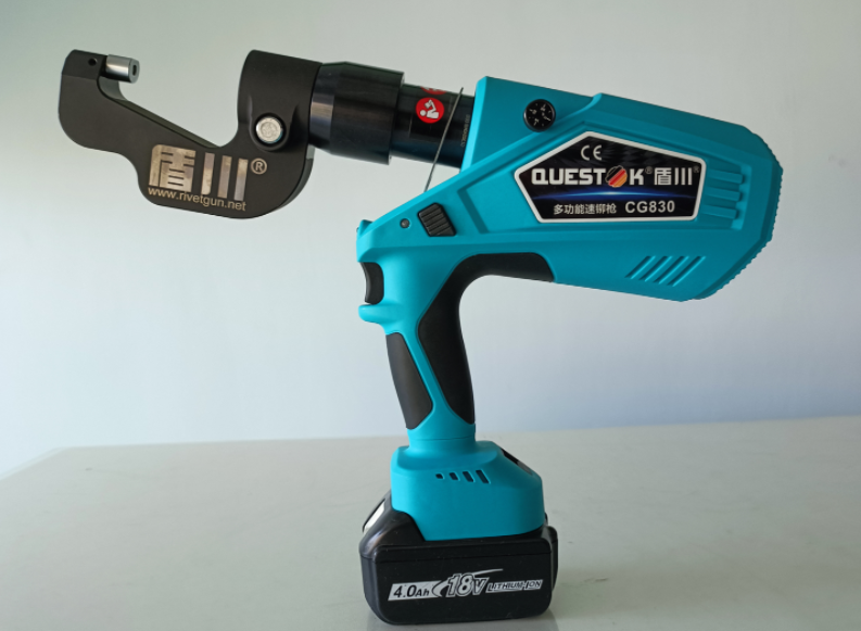 盾川C型钉枪采用先进的电动液压系统,通过精密控制的压力,将专用钉材瞬间压入金属板材。其独特的C型钳口设计,实现了从单侧操作即可完成牢固连接,无需预钻孔,无需背面支撑。