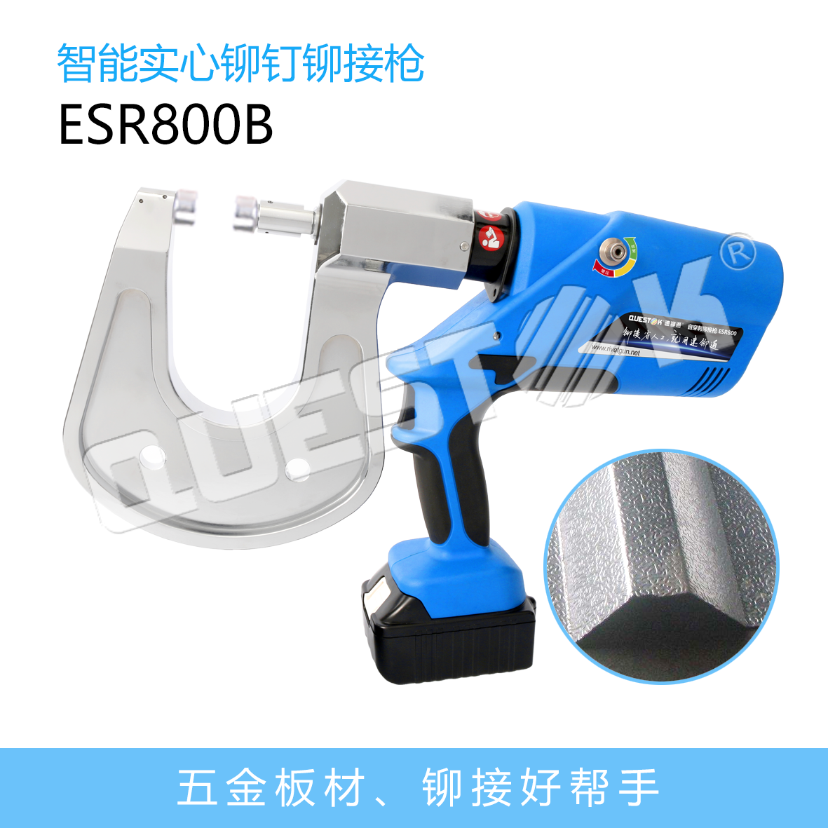 ESR800B智能可调压实心铆接枪,可精准调压,广泛应用于五金板材行业铆接、有动力强劲、压力可调、智能高效、便携等特点,