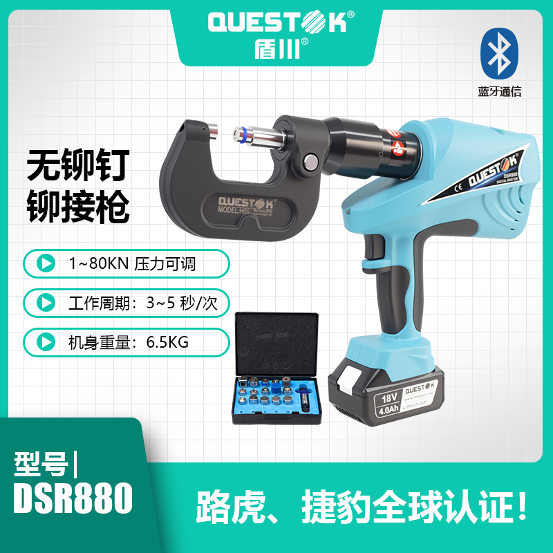 DSR880智能可调压无铆钉铆接枪,可精准调压,广泛应用于五金、板材行业、电缆桥架行业、汽车行业铆接,有动力强劲、压力可调、智能高效、便携等特点,内置智能芯片及精确的压力传感器,确保压力适中,可调可控。